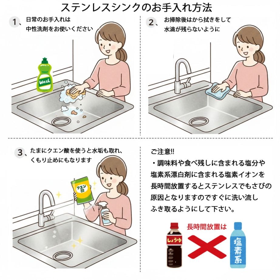 | 商品説明 | 錆びにくいSUS304使用。高品質のステンレスシンクです。 ※排水セットは別途お求めください。 |